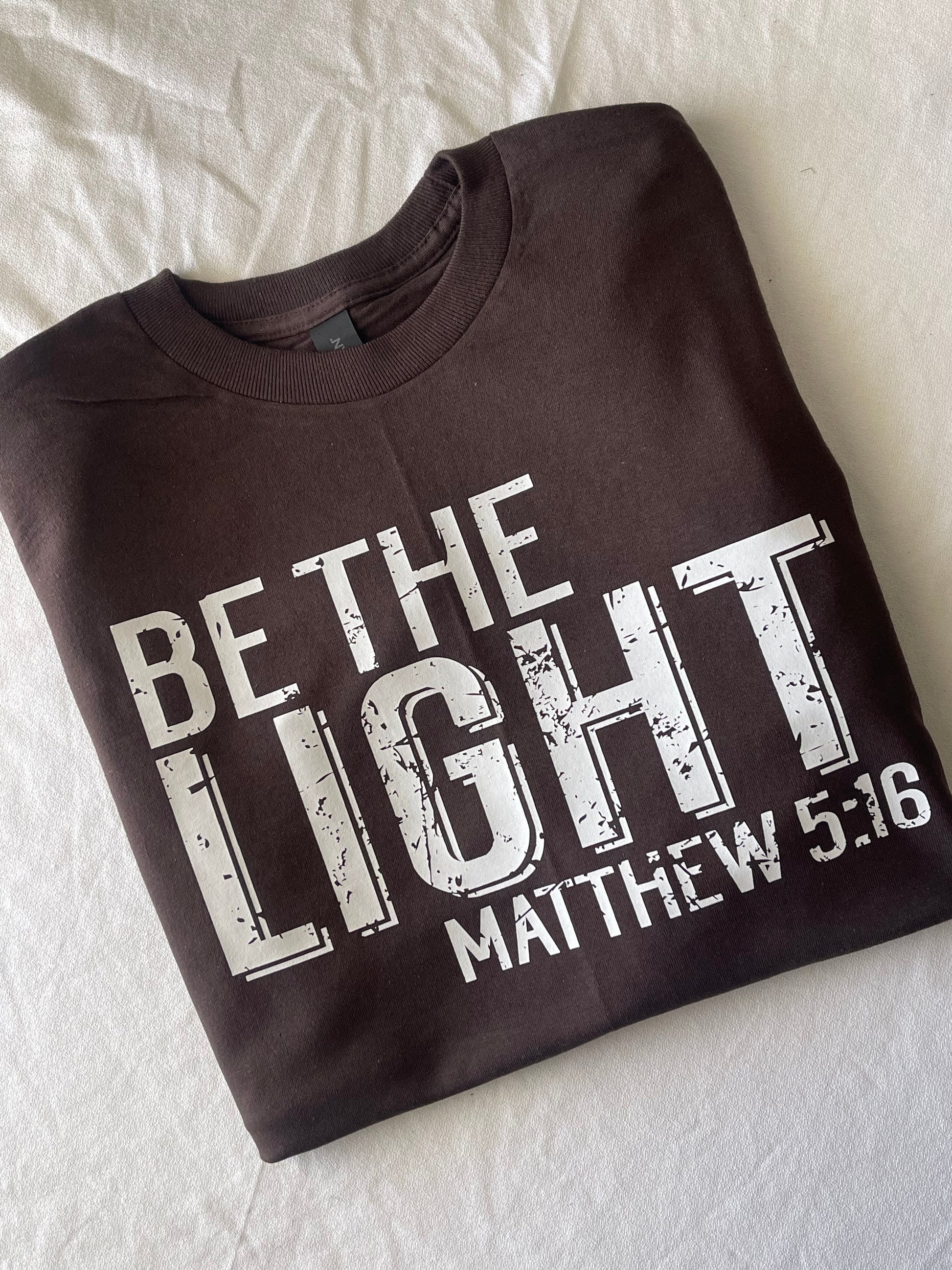 Our Be The Light tee-shirt is not just a tee. As you wear your faith apparel, it serves as a reminder of Matthew 5:16. Let your light shine before others, that they may see your food deeds and glorify your Father in Heaven . You are not just wearing a T- shirt: you are carrying the message of Jesus with every step you take. May His love shine through you in all that you do! Thank you for joining the movement!