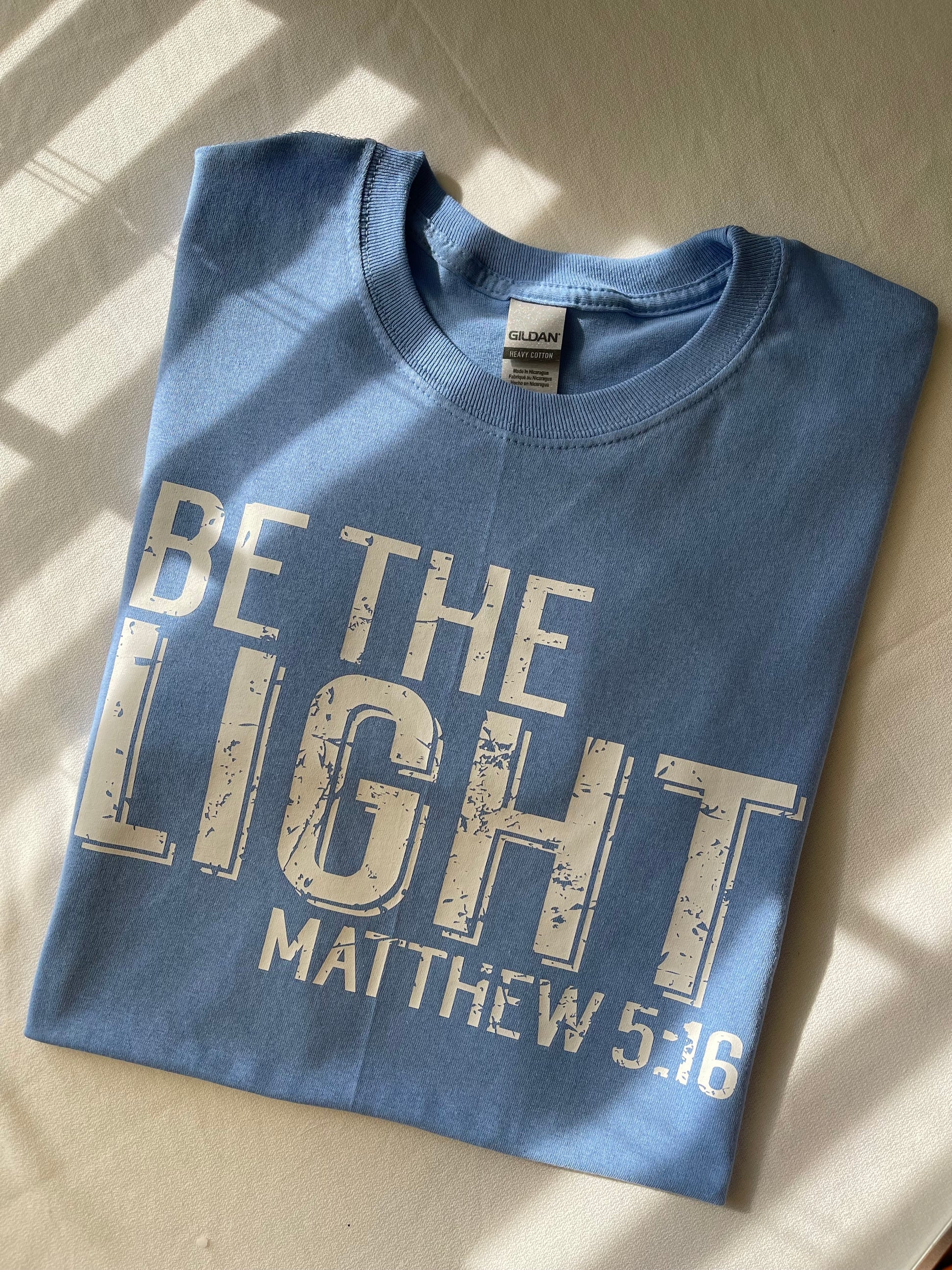Our Be The Light tee-shirt is not just a tee. As you wear your faith apparel, it serves as a reminder of Matthew 5:16. Let your light shine before others, that they may see your food deeds and glorify your Father in Heaven . You are not just wearing a T- shirt: you are carrying the message of Jesus with every step you take. May His love shine through you in all that you do! Thank you for joining the movement!